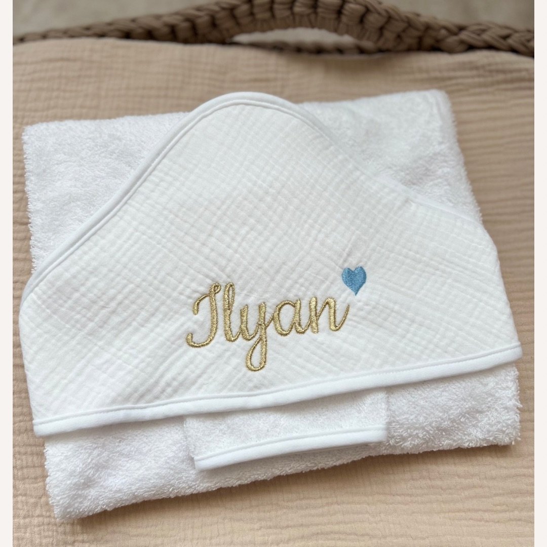 La cape de bain est un incontournable pour la sortie du bain. Elle enveloppe entièrement bébé tout en le gardant au chaud. Personnalisable avec le prénom de votre choix : un cadeau de naissance idéale.