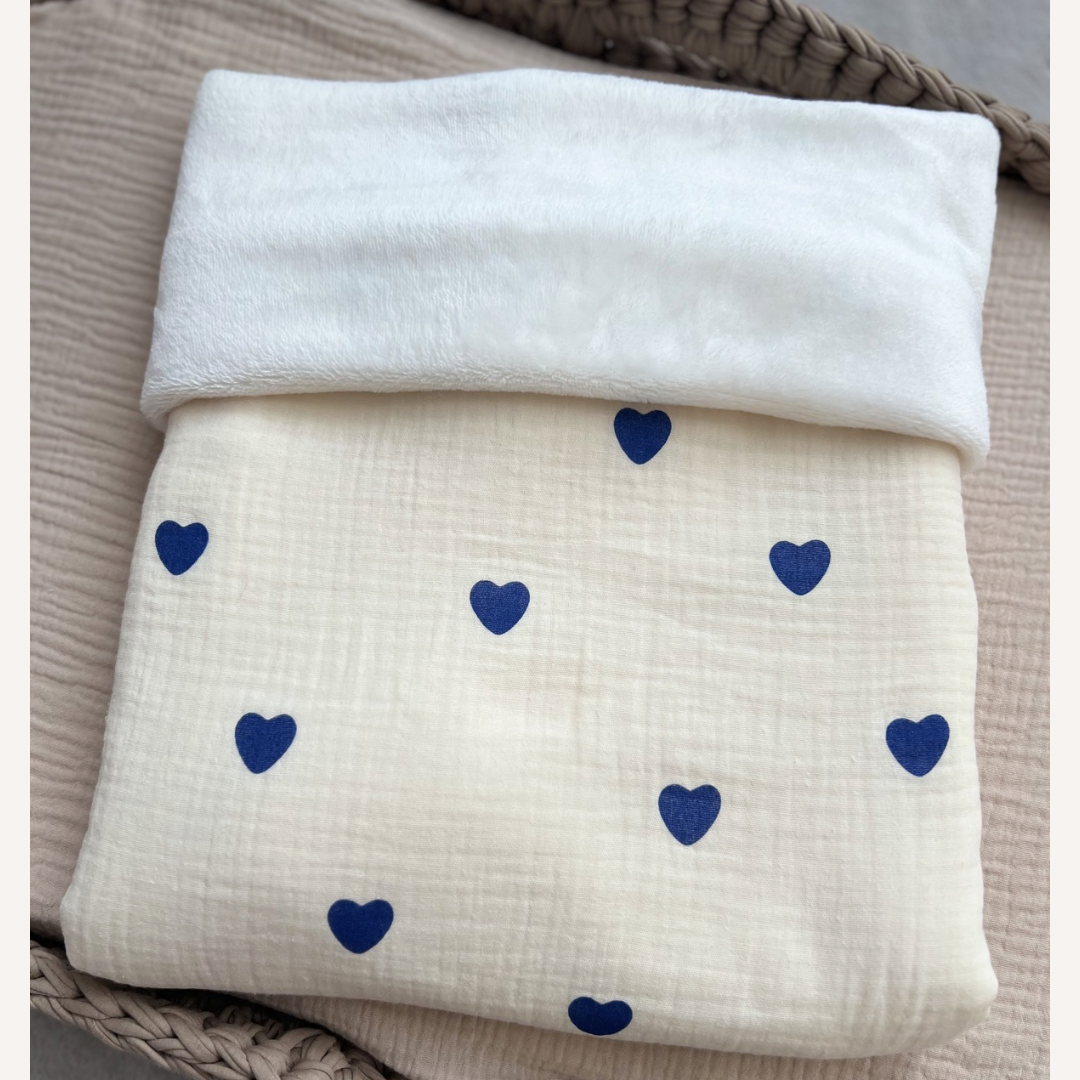 Couverture polaire/gaze de coton coeur bleu