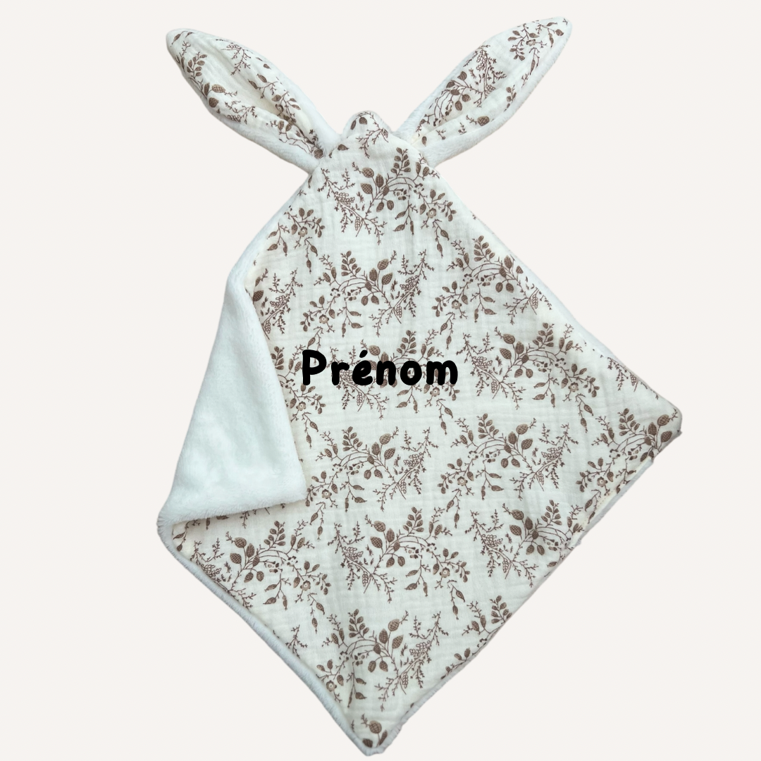 Pour des raisons esthétiques, les lettres fleuries et les rajouts de motifs ne sont pas disponibles sur ce modèle de doudou.